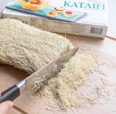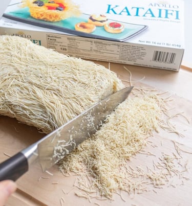 Substitutes: If kataifi is unavailable, crispy cereal or crushed wafers can mimic the texture.